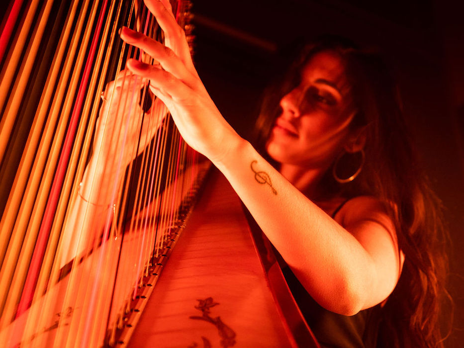 Harpist, vocalist and composer, Liana , demonstrates a clear crossover between classical and contemporary styles in her music. Liana plays the electro-acoustic pedal harp, coupled with amplification and analogue effects pedals to extend the sonority of her instrument.